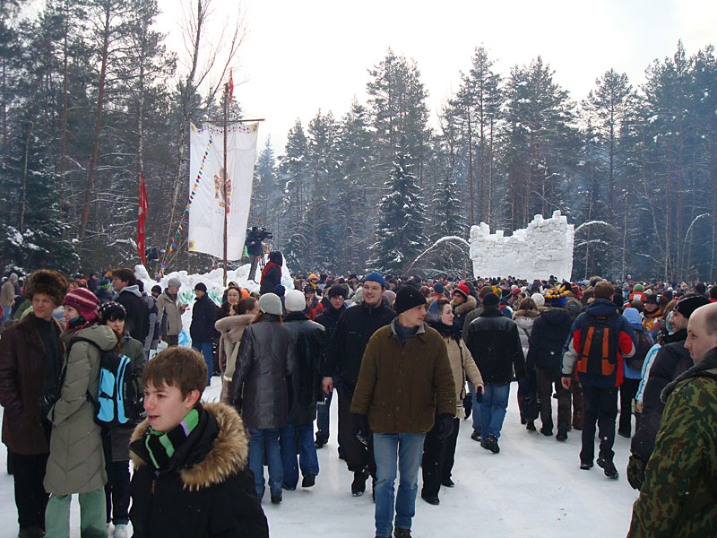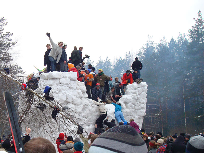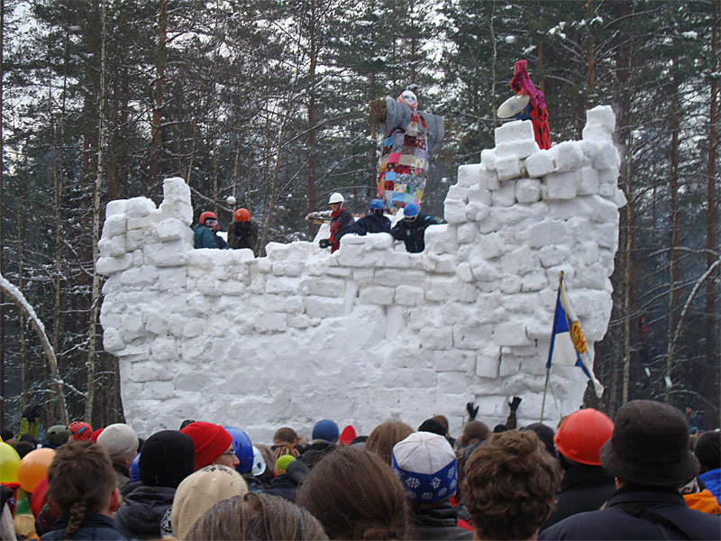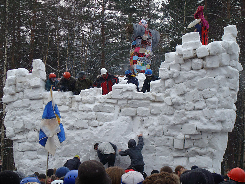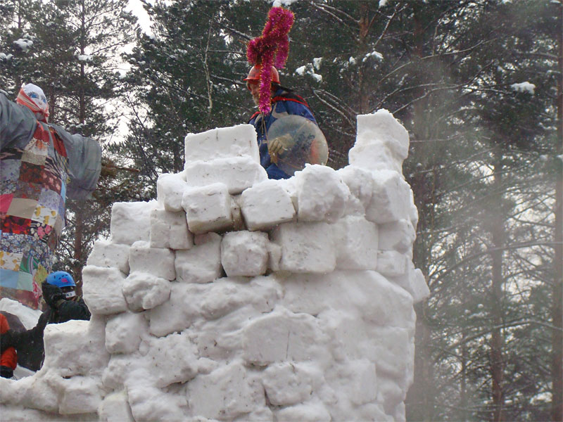 Как итог — масленицу скинули и сожгли неподалеку со всеми причитающимися ритуалами, в крепость пробрались все, кому не лень, а на соседних деревьях развесили все сорванные шапки, повязки, шарфы и перчатки. Дымка резвеивалась еще с полчаса.