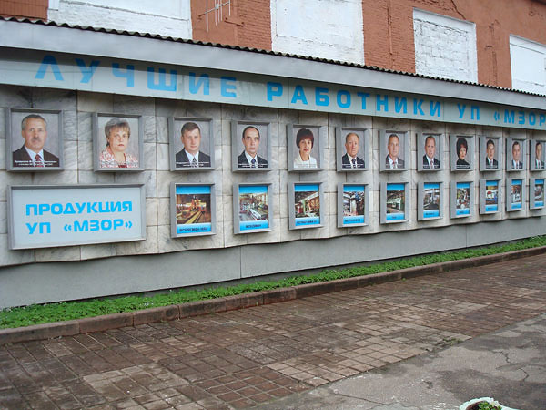 Здесь, в отдалении от людей (возможно, что в будни тут гораздо более многолюдно), стоит доска почета.