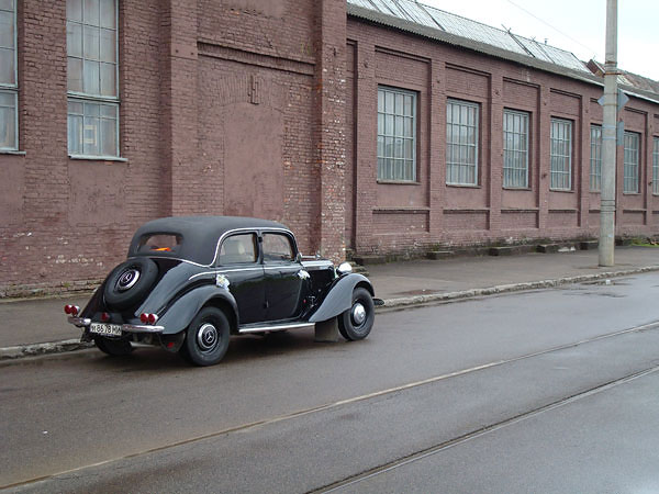 На пустой дороге в промзоне стоит автомобиль, припаркованный с 20-х годов XX века.