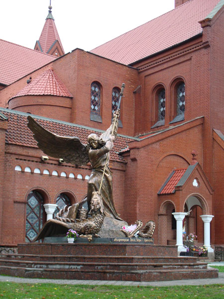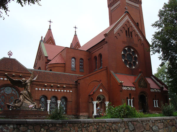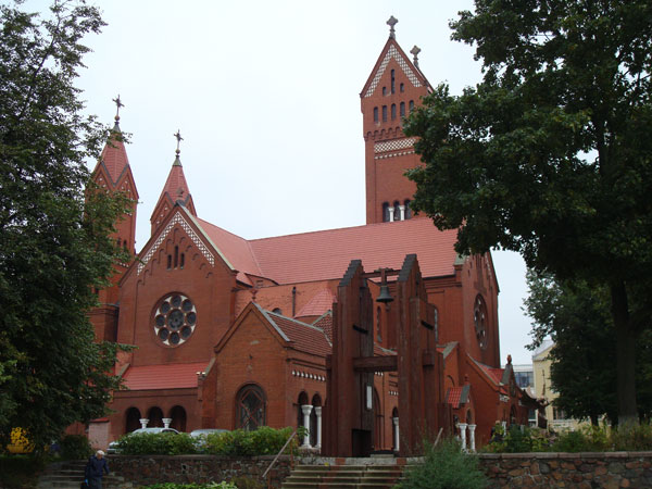 На площади Независимости стоит ярко-красный костел, который, честно говоря, произвел на меня впечатление новостроя из-за своего красного кирпича. Терпеть не могу такие кирпичи, которые у меня стойко ассоциируются с новорусским говностилем середины девяностых. Я был удивлен, что он построен уже более 100 лет назад.