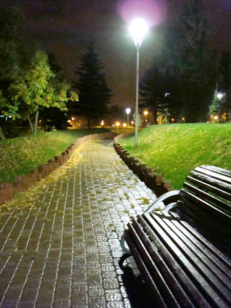 Кстати, время вовсе не позднее, часов десять вечера, но в парке совершенно пусто.