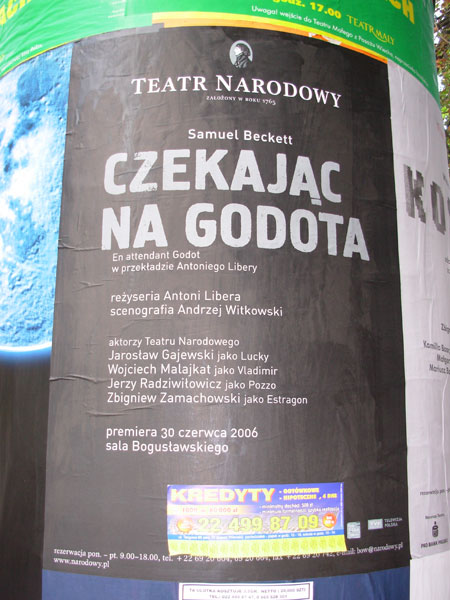 Ничегошеньки, конечно, не работает. А что обиднее — нет ни одной лавки, где бы можно было просто посидеть! Ну, нигде! По дороге натыкають на афишу спектакля «В ожидании Годо».