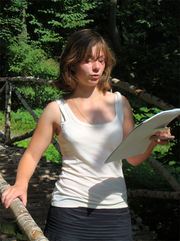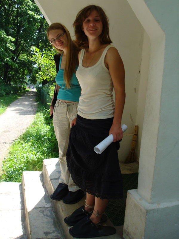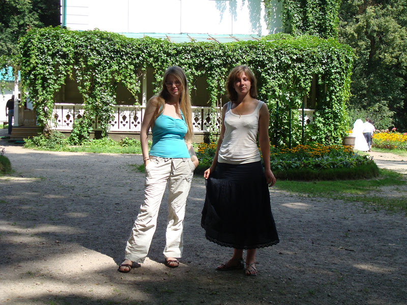 Сели на несколько минут отдохнуть (прямо на дорогу почему-то :-), когда мимо нас прошли три испанца, с которыми Света не преминула поговорить. Оказалось, что они работают в посольстве, и приехали на несколько дней в Тулу. С этой троицей мы пересекались еще дважды в Ясной Поляне, а потом еще и в Туле. Прошли мимо любимой скамейки Толстого.